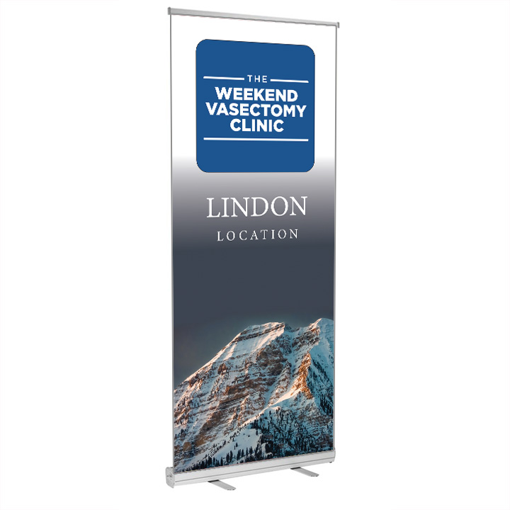 The retractable lobby signage brands your practice as a Weekend Vasectomy Clinic.